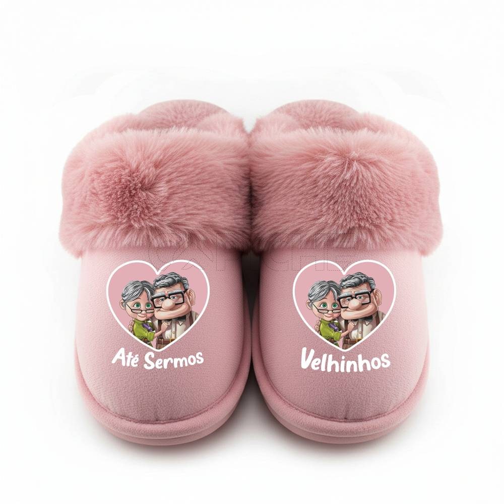 Chinelo com a frase: Até sermos // Velhinhos