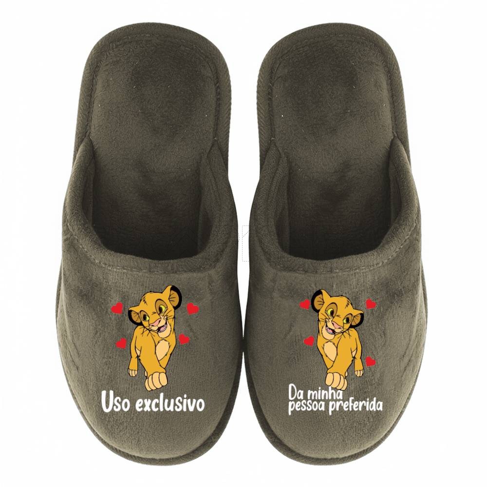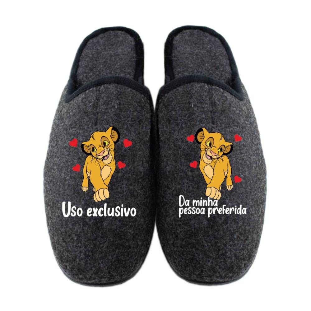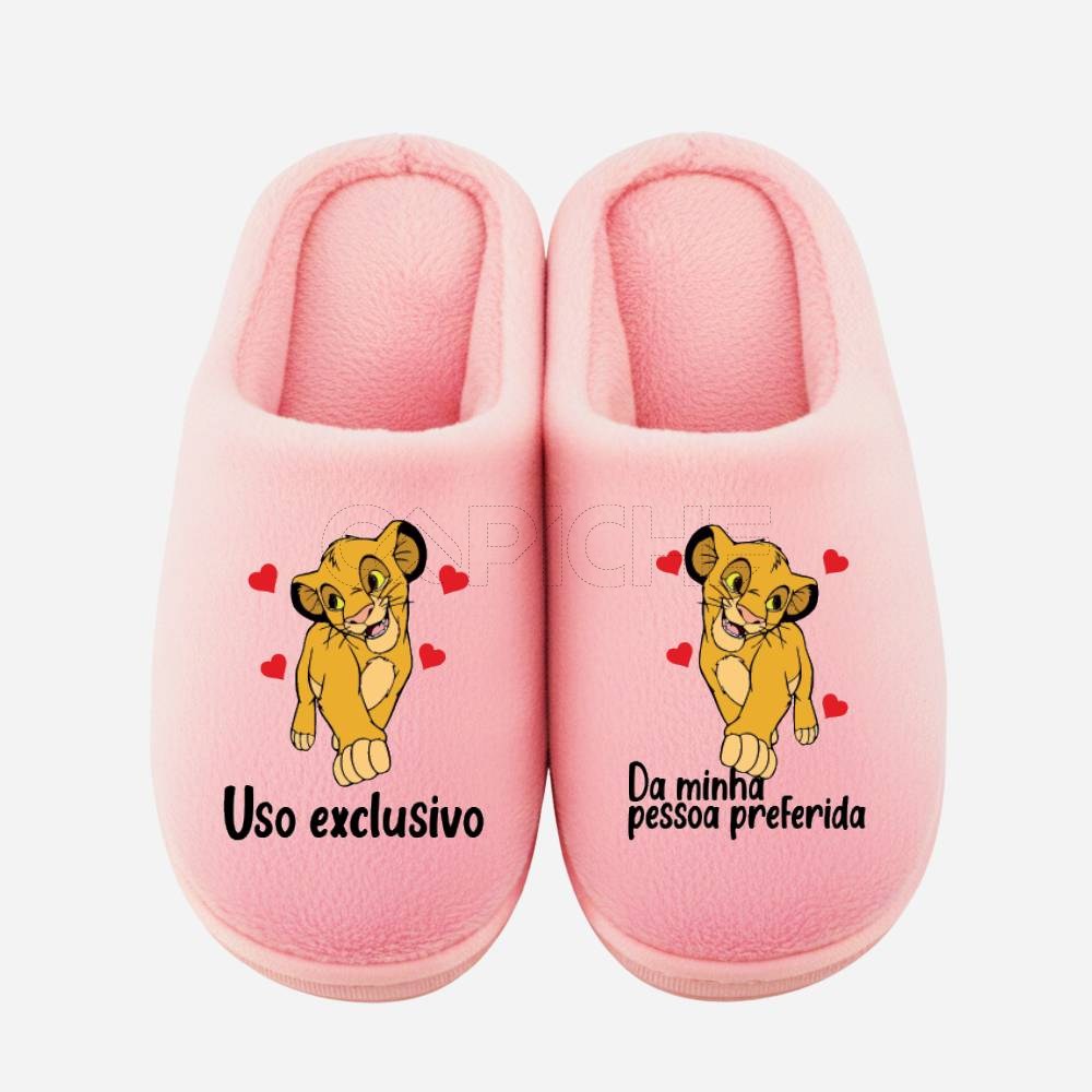 Chinelo com a frase: Uso exclusivo // da minha pessoa preferida (c/ Simba ou Nala)