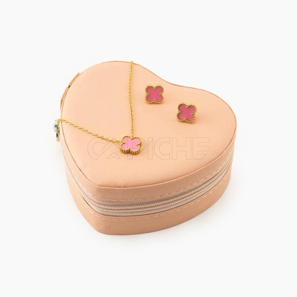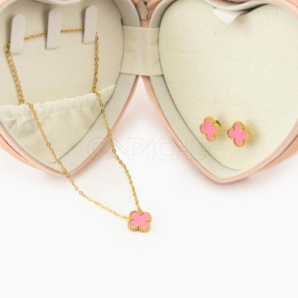 Conjunto de colar e brincos Trevo rosa