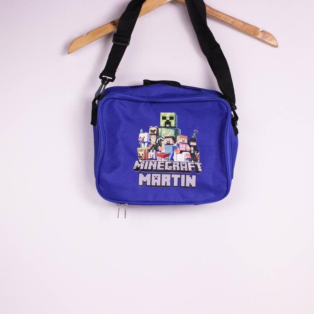 Prática, resistente e cheia de estilo! Esta lancheira escolar, na cor azul royal e inspirada no universo Minecraft, é personalizada com o nome Martin, garantindo um toque único e fácil identificação.
