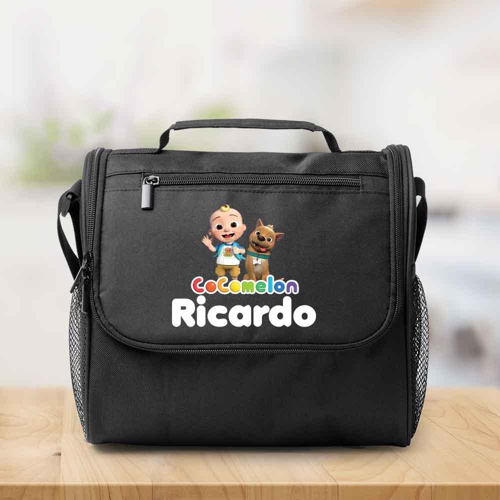 🖤 Lancheira Preta Personalizável Cocomelon – Estilo, Praticidade e o Seu Nome!