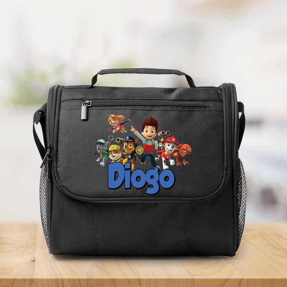 🖤 Lancheira Preta Personalizável Patrulha Pata – Estilo, Praticidade e o Seu Nome!