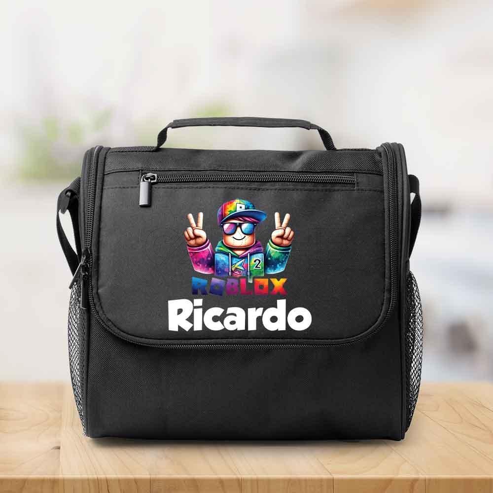 🖤 Lancheira Preta Personalizável Roblox – Estilo, Praticidade e o Seu Nome!