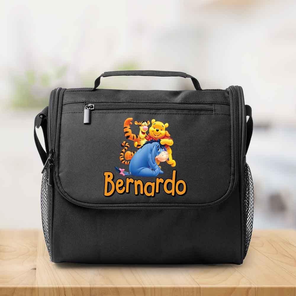 🖤 Lancheira Preta Personalizável Winnie the Pooh– Estilo, Praticidade e o Seu Nome!