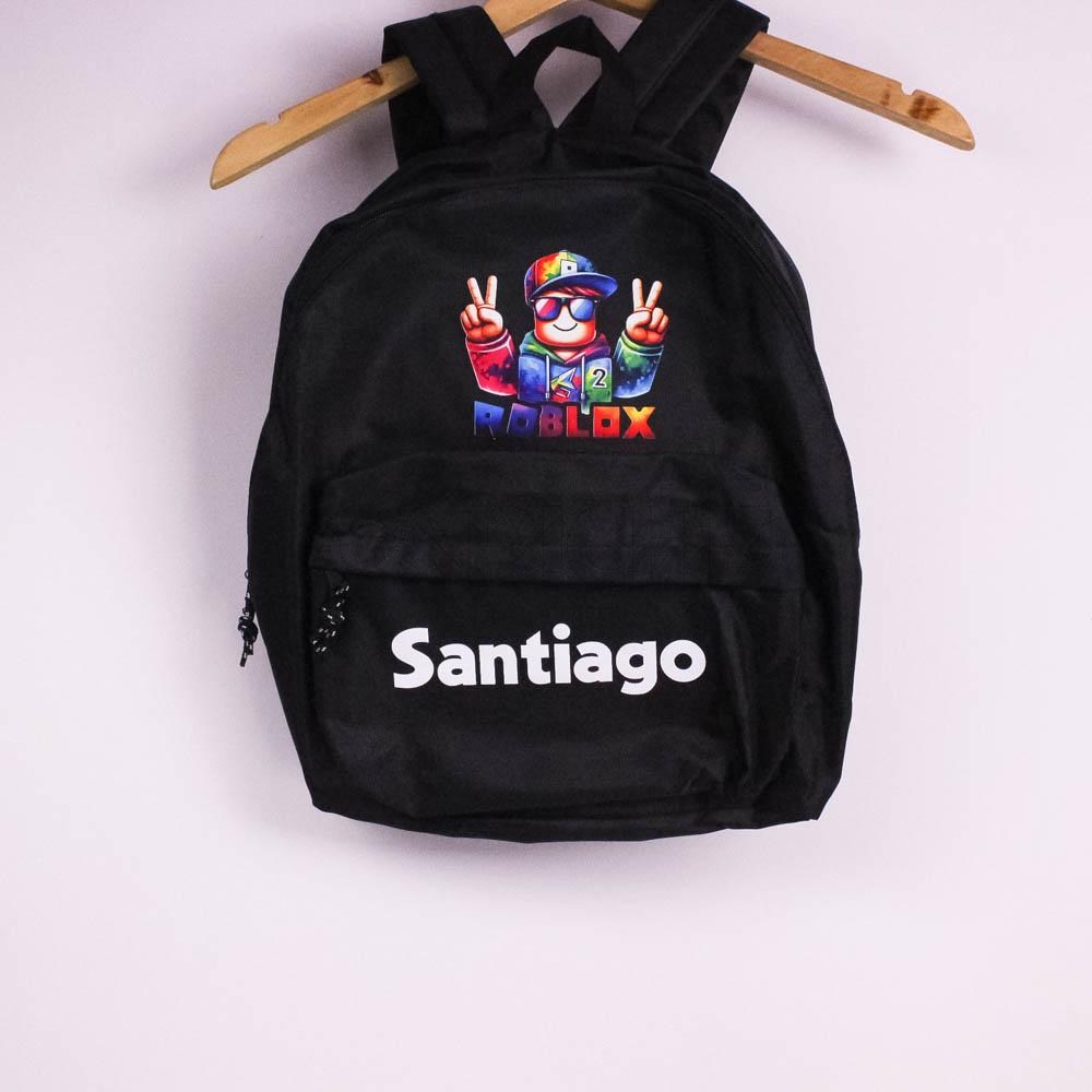 Entre no mundo do jogo e leve seus itens com estilo! Esta mochila preta, inspirada no universo Roblox e personalizada com o nome Santiago, une resistência, praticidade e diversão.