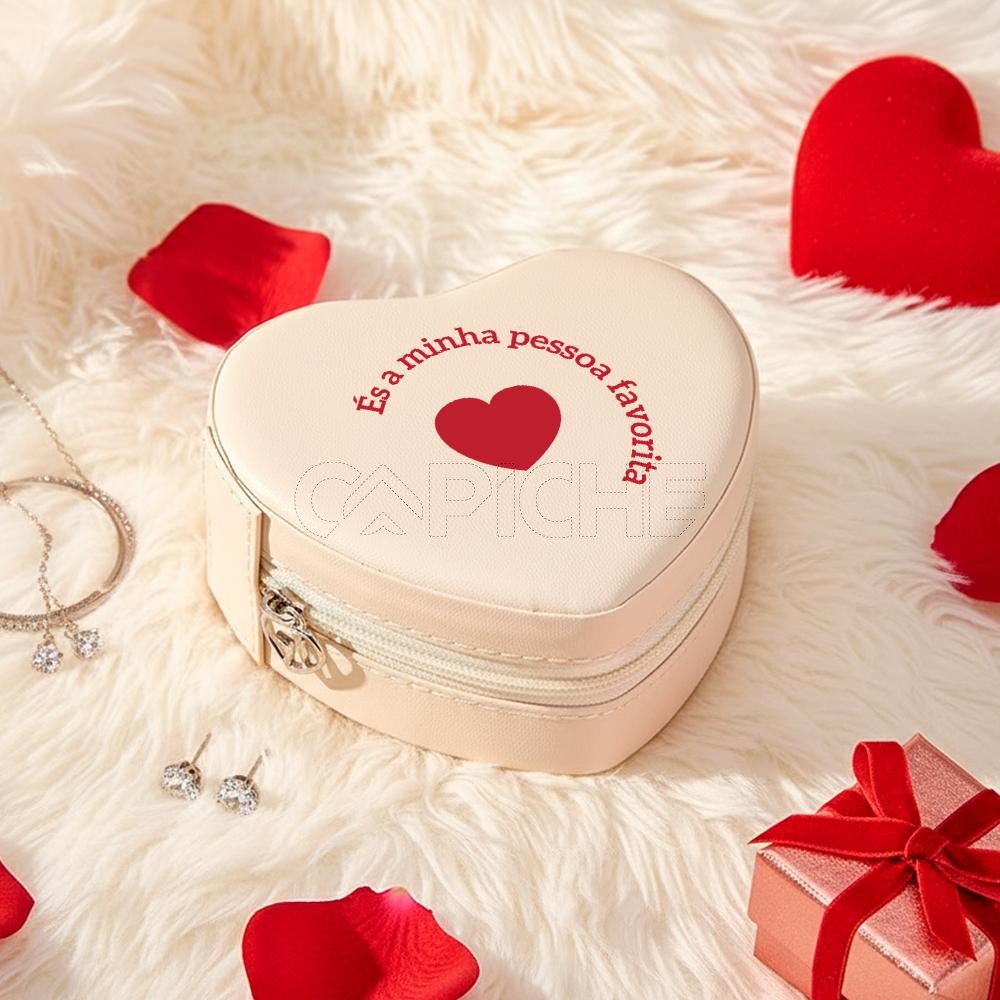Realce a beleza das suas joias com o nosso exclusivo porta-joias em forma de coração. Cada peça, cuidadosamente desenhada para proteger e organizar os seus tesouros, torna-se um objeto único graças à opção de personalização. Um detalhe distintivo que o torna o presente perfeito para aquela pessoa especial, ou para adicionar um toque pessoal à sua própria coleção.